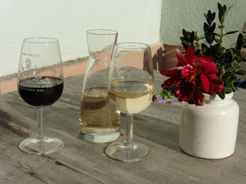 Der Süße See ist kein Tagebaurestloch, sondern echt, in unmittelbarer Nähe wird Wein angebaut, welcher die Herkunftsbezeichnung Saale-Unstrut führt. Auch darum begannen wir unseren Aufenthalt im Weingut Schloss Seeburg, welches seinen Keller an den Wochenenden für Neugierige offen hält.