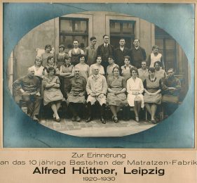 „Die Patentmatratzenfabrik wurde von Alfred Hüttner im Jahre 1920 in Leipzig gegründet. Durch Erzeugung von Qualitätsware entwickelte sich das Geschäft gut, so daß die Geschäftsräume selbst nach verschiedenen Veränderungen nicht mehr ausreichend waren. Die Fabrikation von Auflagematratzen, Reformunterbetten und Schonerdecken wurde später noch aufgenommen. Nach der bisherigen Entwicklung ist dem jungen Unternehmen gewiß eine weitere Ausdehnung gegönnt. Im Jahre 1935 wurde die Fabrik in Mölkau bei Leipzig, welche 30 Jahre im Besitz der Gebr. Sternkopf gewesen ist, käuflich übernommen.“