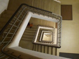 In den öffentlichen Gebäuden sowie den öffentlich zugänglichen sind ebenfalls tolle Treppenhäuser zu sehen, in Rathäusern, Schulhäusern (Leibniz-Schule, Volkshochschule u.a.) und Kaufhäusern zum Beispiel. Karstadt hatte mal ein schönes – wir waren ewig nicht dort.